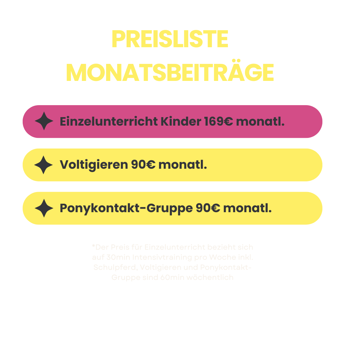 Für die ambitionierten ReiterInnen ab 4 Jahren (bis einschließlich 11 Jahre) bieten wir unsere Reitstunden im Einzelunterricht (30min) an. Wenn dein Kind nun endlich so richtig reiten lernen möchte: Hier habt ihr die Möglichkeit endlich alles von Anfang an richtig zu lernen und mit dem Pony zusammenzuwachsen!